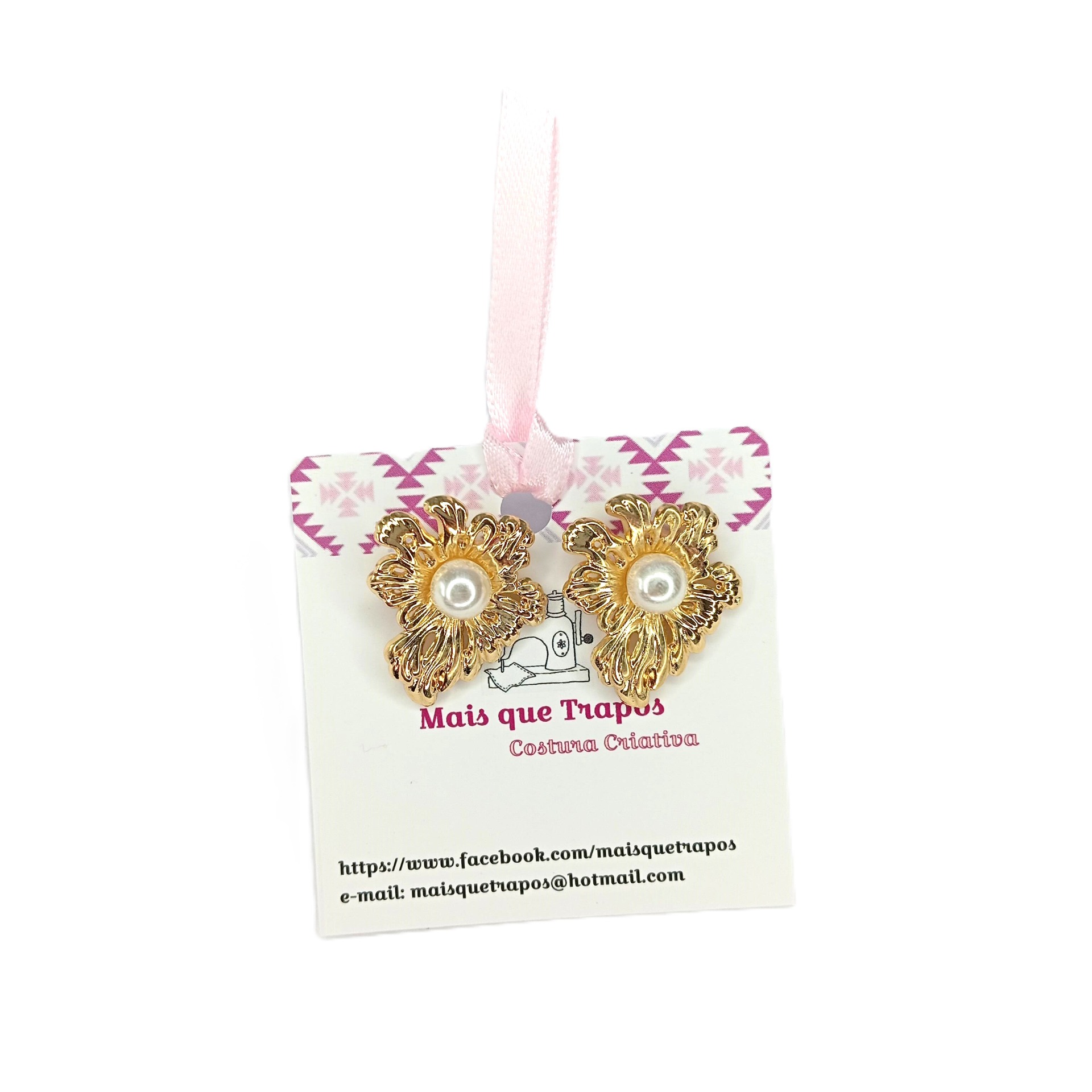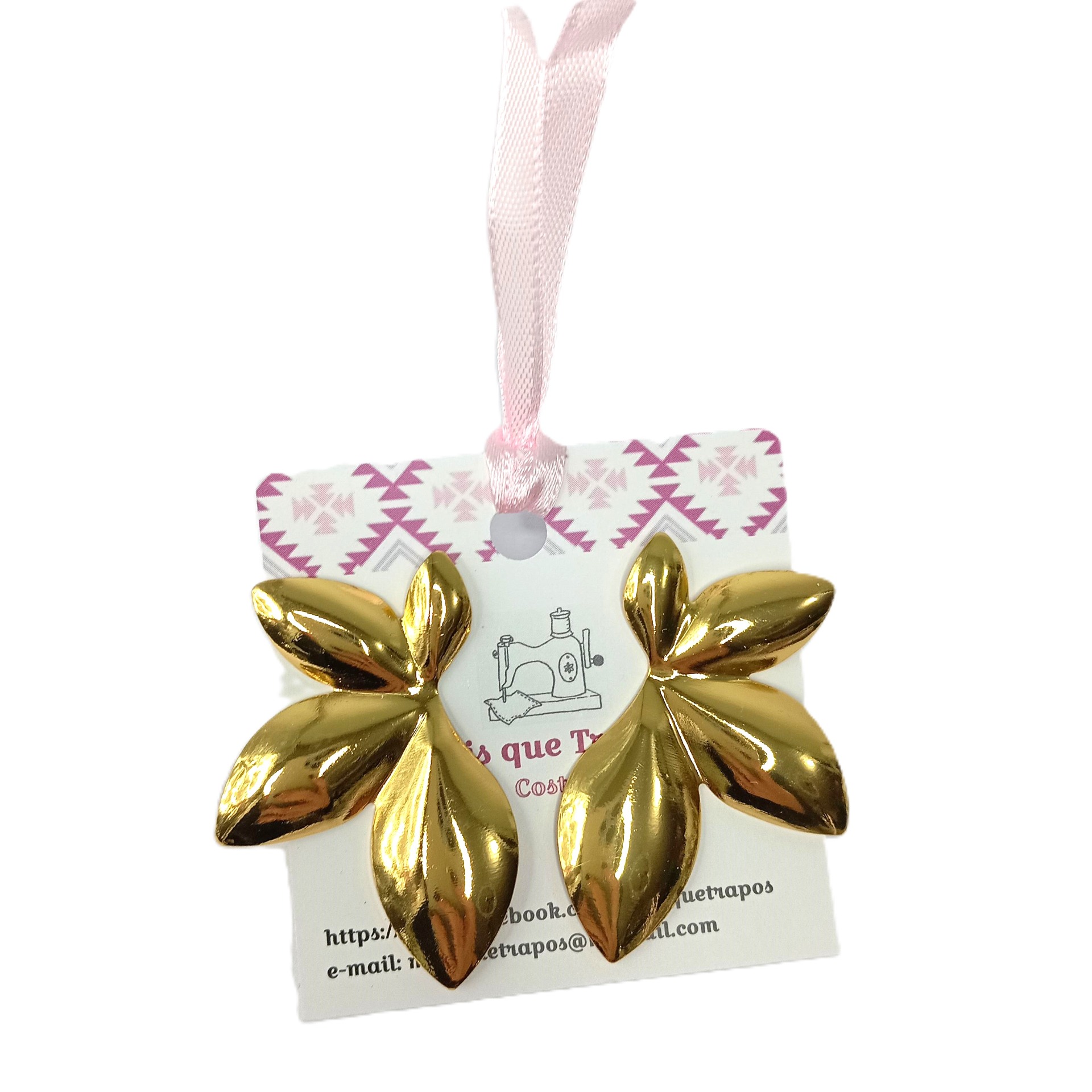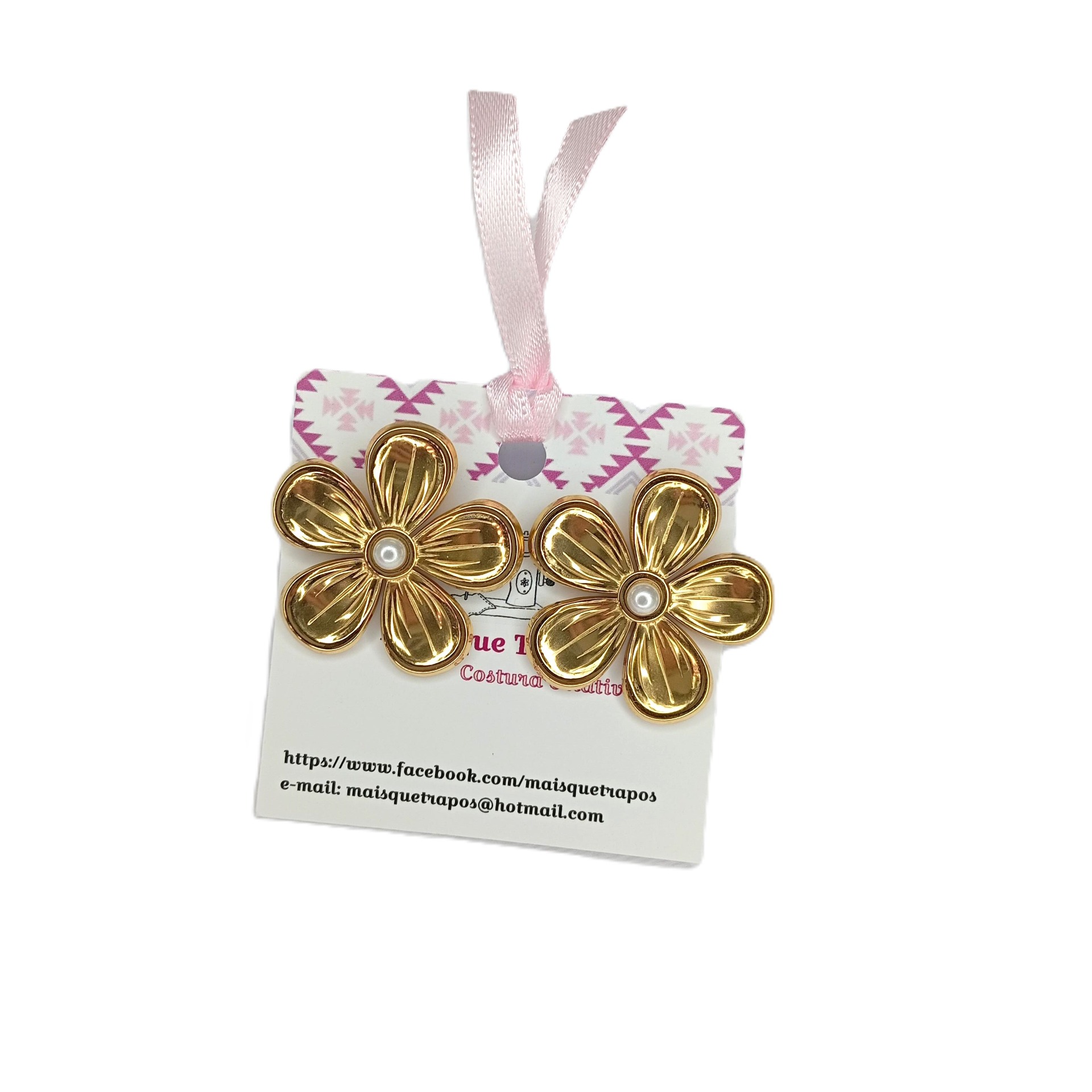 Brincos em aço inoxidável - Flores douradas