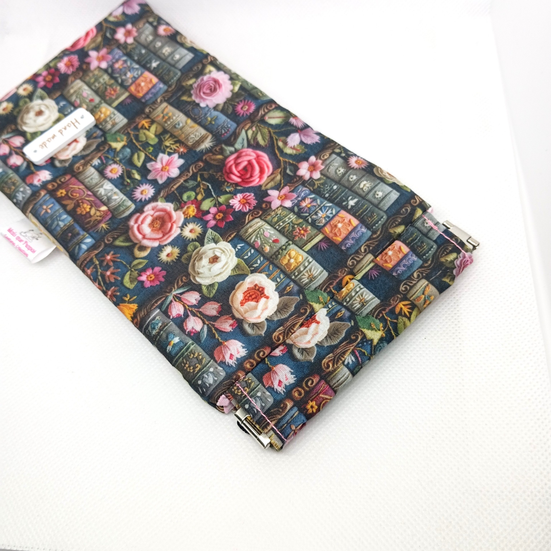 Bolsa compacta com fecho click clack, ideal para canetas, lápis, óculos ou pequenos acessórios.