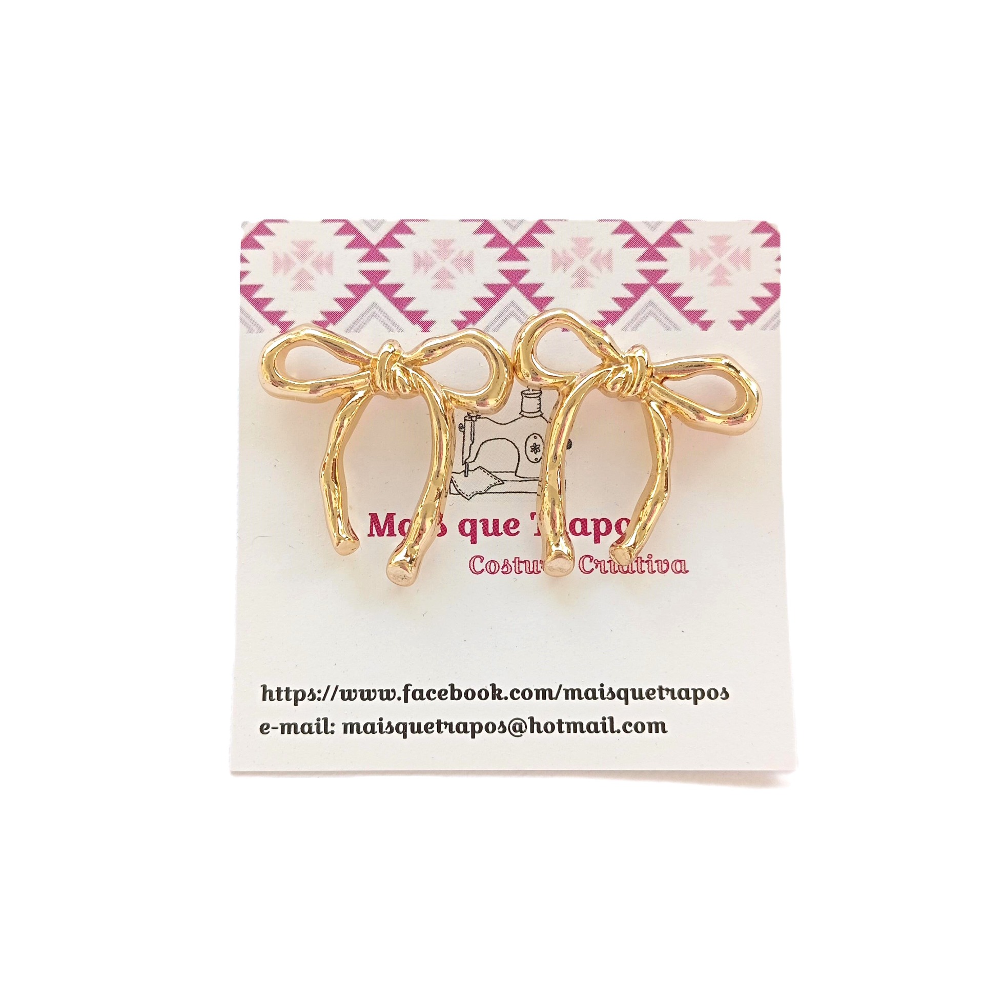 Brincos em aço inoxidável, com delicado formato de laço e acabamento dourado.