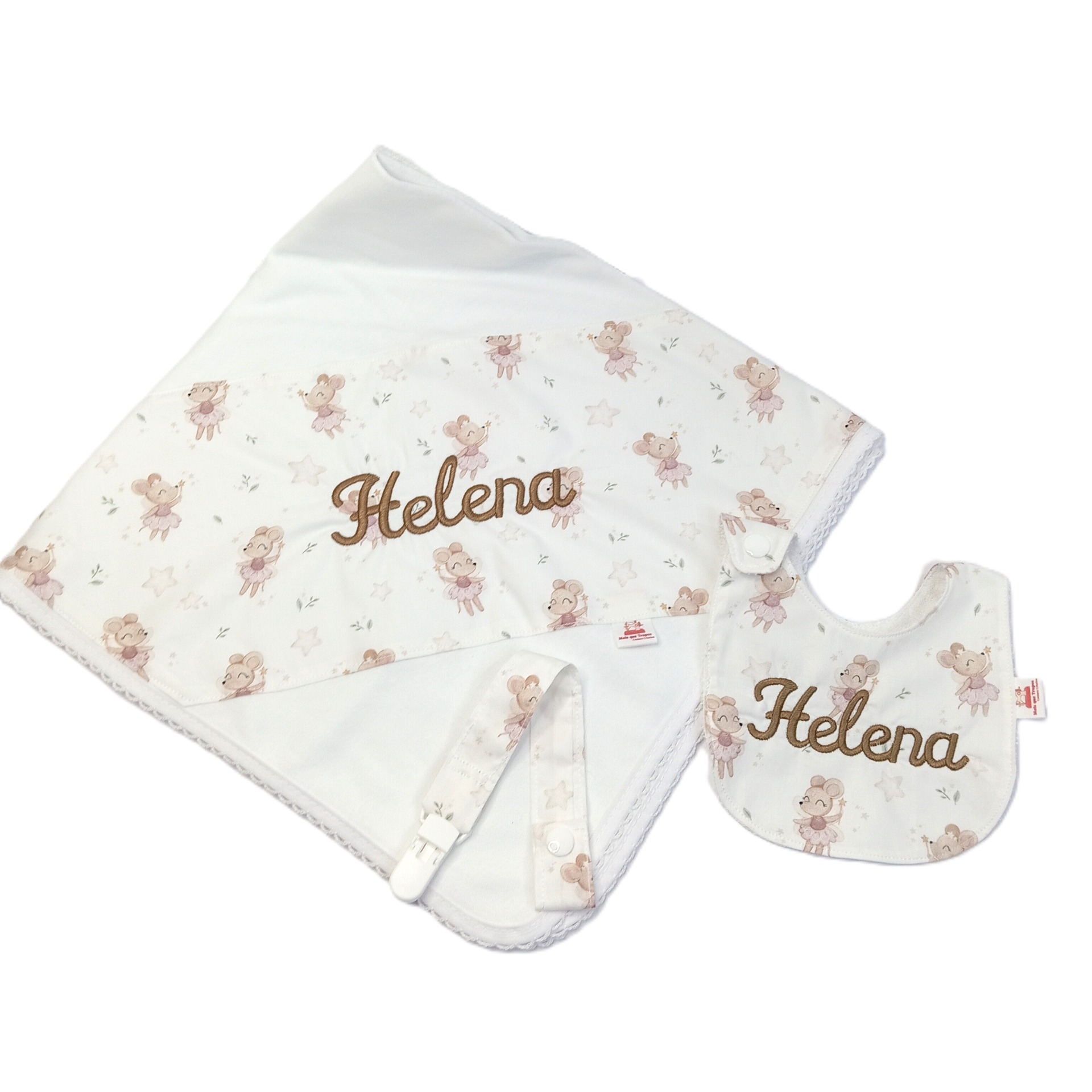 O conjunto fralda de pano + babete + prende chucha é o presente ideal para recém-nascidos, reunindo aconchego, ternura e praticidade: