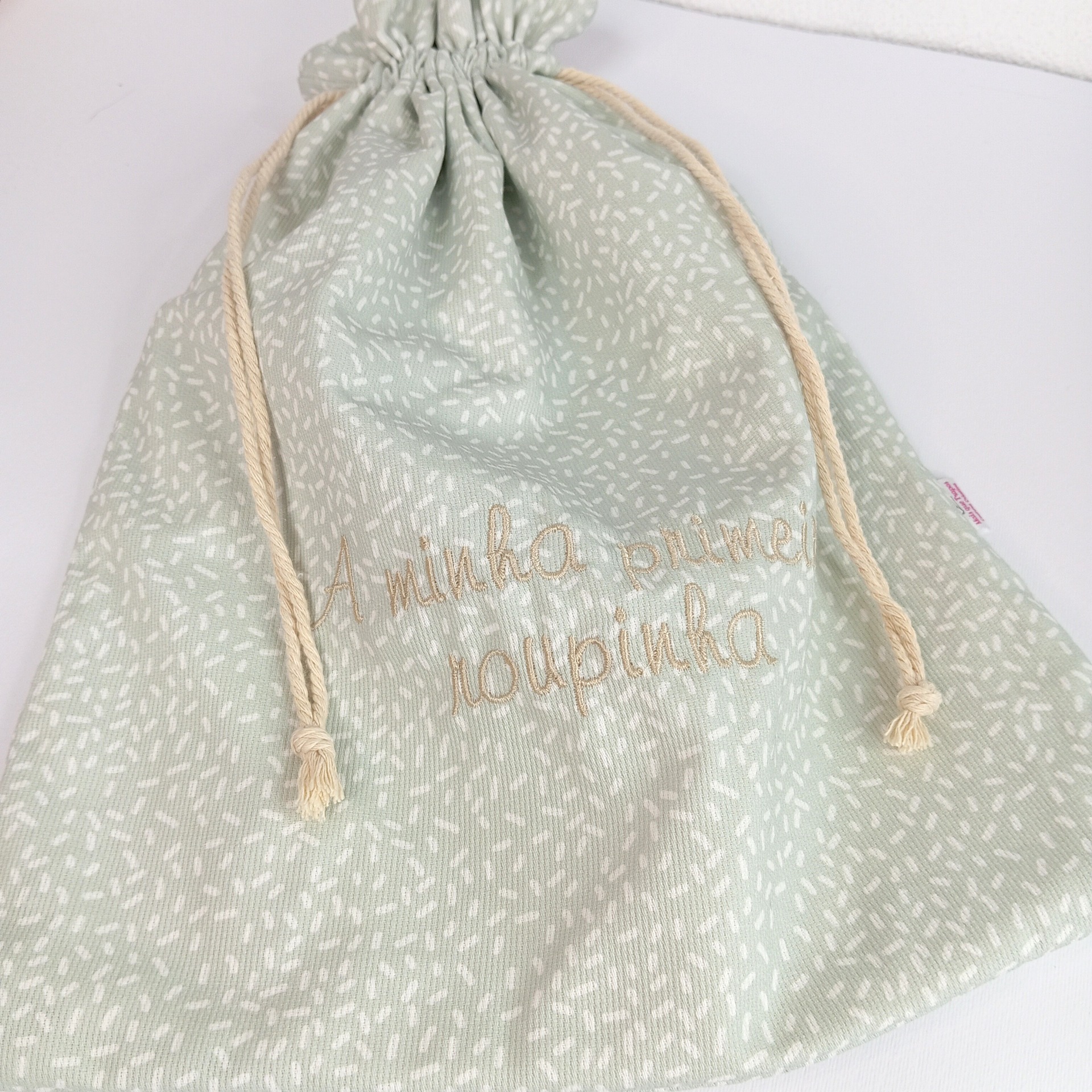 A saquinha da primeira roupinha é um acessório especial, pensado para um dos momentos mais importantes: a chegada do bebé.